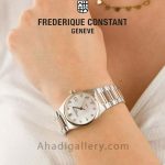 ساعت فردریک کنستانت FC-240MPWD2NH2B ساعت زنانه فردریک کنستانت از مجموعه هایلایف مبتنی بر اصول خاصی است که از تجربه طولانی فردریک کنستانت به دست آمده است که یکی از ویژگی های طراحی منحصر به فرد آن بند مخصوص است ساخته شده از استیل ضد زنگ و ضد حساسیت بند استیل ضد زنگ و ضد حساسیت ذخیره انرژی :۳۸ ساعت شیشه کاملا ضد خش نمایشگر روزهای ماه دارای یک بند اضافه سایز: ۳۱ میلی متر دارای نگین برلیان نوع موتور کوارتز کالیبر FC-240 ضدآب ۵۰ متر