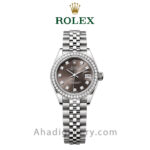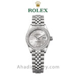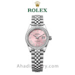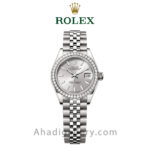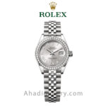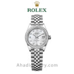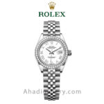 ساعت Lady-Datejust Oyster Perpetual از جنس اویستر استیل و طلای سفید مجهز به صفحه الماسنشان و بند جوبیلی است.