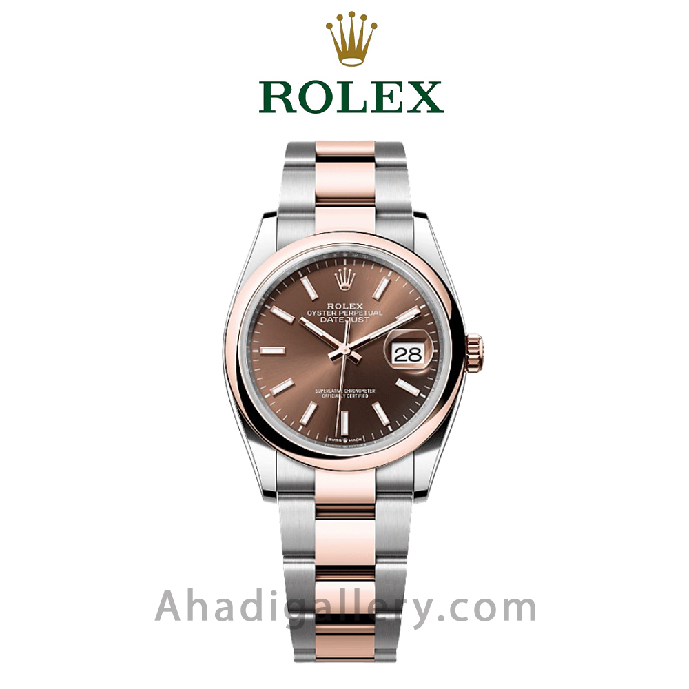 ساعت Oyster Perpetual Datejust 36 از جنس اویستراستیل و طلای اِور رُز مجهز به بند اویستر است.