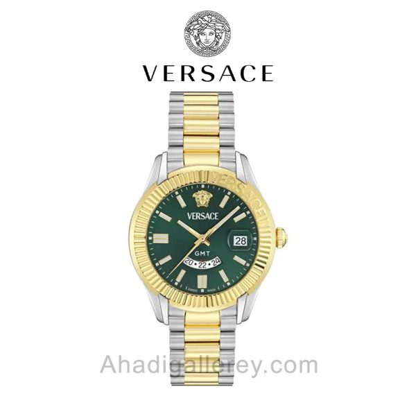 وقتی به مدل VE0u00225 نگاه میکنیم، اولین چیزی که جلب توجه میکند، طراحی آشنا، کلاسیک و بسیار جذاب آن است. ورساچه در این مدل از ترکیب رنگ پرطرفدار استیل و طلا (که در دنیای ساعت به آن Two-Tone میگویند) استفاده کرده است. مزیت بزرگ ساعتهای دورنگ این است که به شما اجازه میدهند آنها را به راحتی با هر استایلی ست کنید؛ چه یک کتوشلوار رسمی پوشیده باشید و چه یک لباس راحت برای آخر هفته.