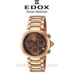 ساعت زنانه EDOX 1022037RMBRIR ساعتی کلاسیک هست که با بند استیل رزگلد و صفحه ای به رنگ قهوه ای به شما مشتریان خوب عرضه میگردد . قطر این ساعت زیبا 35 میلی متر است . این ساعت زیبا از سری La Passion می باشد . شیشه این ساعت سافایر کریستال می باشد که زیبایی آن را دو چندان می کند . صفحه کرنوگراف از دیگر مزیت های این ساعت زیبا هست . در مجموع اگر قصد خرید ساعتی کلاسیک را دارید این ساعت یکی از بهترین نمونه ها در این بازه قیمتی محسوب می شود .