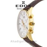 ساعت مردانه EDOX 1040837JAAR ساعتی کلاسیک هست که با بند چرم قهوه ای و صفحه ای به رنگ سفید به شما مشتریان خوب عرضه میگردد . قطر این ساعت زیبا 41 میلی متر و ضخامت 10 میلی متر است . شیشه این ساعت سافایر کریستال می باشد که زیبایی آن را دو چندان می کند . این ساعت زیبا از سری LES VAUBERTS می باشد صفحه کرنوگراف از دیگر مزیت های این ساعت زیبا می باشد. این ساعت در آب تا عمق 50 متر مقاومت دارد . در مجموع اگر قصد خرید ساعتی کلاسیک را دارید این ساعت یکی از بهترین نمونه ها در این بازه قیمتی محسوب می شود .