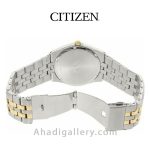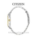 سیتيزن “Citizen Watch” يكي از برندهاي معتبر و با سابقه در توليد ساعت مچي مردانه و ساعت مچي زنانه است كه توانسته با ساخت محصولات با كيفيت احساس اعتمادي را ذهن مشتريان خود ايجاد كند. این ساعت زیبا با قطر 40 میلی متر و ضخامت 9 میلی متر عرضه شده که سایز ایده آلی برای یک ساعت مردانه به شمار میرود. بند ساعت از جنس استیل و رنگ آن طلایی و نقره ای می باشد. مزیت دیگر این مدل eco – drive میباشد که انرژی خود را توسط نور تامین میکند و دیگر نیازی به باتری نیست. طراحيهاي شركت سيتيزن بسيار شيك و چشم نواز است كه در اين مدل نيز كاملا مشهود است.اگر ساعت زیبا و ساده ولی در عین حال شیک میخواهید این ساعت گزینه مناسبی می باشد .