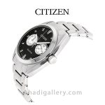 “سیتيزن “”Citizen Watch”” يكي از برندهاي معتبر و با سابقه در توليد ساعت مچي مردانه و ساعت مچي زنانه است كه توانسته با ساخت محصولات با كيفيت احساس اعتمادي را ذهن مشتريان خود ايجاد كند. این ساعت زیبا با قطر 43.5 میلی متر عرضه شده که سایز ایده آلی برای یک ساعت مردانه به شمار میرود. بند ساعت از جنس استیل و رنگ آن نقره ای می باشد. مزیت دیگر این مدل eco – drive میباشد که انرژی خود را توسط نور تامین میکند و دیگر نیازی به باتری نیست. طراحيهاي شركت سيتيزن بسيار شيك و چشم نواز است كه در اين مدل نيز كاملا مشهود است.اگر ساعت زیبا و ساده ولی در عین حال شیک میخواهید این ساعت گزینه مناسبی می باشد .