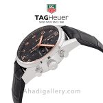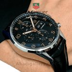 ساعت مردانه TAG HEUER CV2A1ABFC6379 ساعتی لوکس که با بند چرم مشکی و صفحه ای با رنگ مشکی به شما مشتریان خوب عرضه میگردد . این ساعت زیبا با قطری 43 میلی متر که برای همه ی آقایان قابلیتی معقول محسوب میشود. این ساعت از سری ساعت های Carrera می باشد . مقاومت این ساعت در آب تا عمق 100 متر می باشد. شیشه این ساعت سافایر کریستال هست که زیبایی آن را دو چندان میکند. عقربه های شب نما و صفحه کرنوگراف از دیگر مزیت های این ساعت زیبا محسوب میشود. در مجموع اگر قصد خرید ساعتی لوکس را دارید این ساعت یکی از بهترین نمونه ها در بازه قیمتی به نظر میرسد.