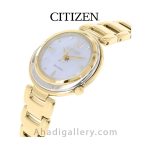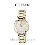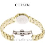 سیتيزن “Citizen Watch” يكي از برندهاي معتبر و با سابقه در توليد ساعت مچي مردانه و ساعت مچي زنانه است كه توانسته با ساخت محصولات با كيفيت احساس اعتمادي را ذهن مشتريان خود ايجاد كند. این ساعت زیبا با قطر 30 میلی متر عرضه شده که سایز ایده آلی برای یک ساعت زنانه به شمار میرود. بند ساعت از جنس استیل و رنگ آن طلایی می باشد. مزیت دیگر این مدل eco – drive میباشد که انرژی خود را توسط نور تامین میکند و دیگر نیازی به باتری نیست. طراحيهاي شركت سيتيزن بسيار شيك و چشم نواز است كه در اين مدل نيز كاملا مشهود است.اگر ساعت زیبا و ساده ولی در عین حال شیک میخواهید این ساعت گزینه مناسبی می باشد .