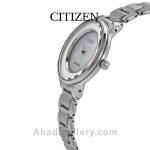 “سیتيزن “”Citizen Watch”” يكي از برندهاي معتبر و با سابقه در توليد ساعت مچي مردانه و ساعت مچي زنانه است كه توانسته با ساخت محصولات با كيفيت احساس اعتمادي را ذهن مشتريان خود ايجاد كند. این ساعت زیبا با قطر 30 میلی متر عرضه شده که سایز ایده آلی برای یک ساعت زنانه به شمار میرود. بند ساعت از جنس استیل و رنگ آن نقره ای می باشد. مزیت دیگر این مدل eco – drive میباشد که انرژی خود را توسط نور تامین میکند و دیگر نیازی به باتری نیست. طراحيهاي شركت سيتيزن بسيار شيك و چشم نواز است كه در اين مدل نيز كاملا مشهود است.اگر ساعت زیبا و ساده ولی در عین حال شیک میخواهید این ساعت گزینه مناسبی می باشد .