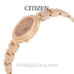 “سیتيزن “”Citizen Watch”” يكي از برندهاي معتبر و با سابقه در توليد ساعت مچي مردانه و ساعت مچي زنانه است كه توانسته با ساخت محصولات با كيفيت احساس اعتمادي را ذهن مشتريان خود ايجاد كند. این ساعت زیبا با قطر 28 میلی متر عرضه شده که سایز ایده آلی برای یک ساعت زنانه به شمار میرود. بند ساعت از جنس استیل و رنگ آن رزگلد می باشد. مزیت دیگر این مدل eco – drive میباشد که انرژی خود را توسط نور تامین میکند و دیگر نیازی به باتری نیست. طراحيهاي شركت سيتيزن بسيار شيك و چشم نواز است كه در اين مدل نيز كاملا مشهود است.اگر ساعت زیبا و ساده ولی در عین حال شیک میخواهید این ساعت گزینه مناسبی می باشد .
