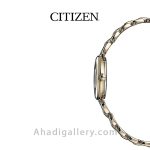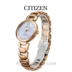“سیتيزن “”Citizen Watch”” يكي از برندهاي معتبر و با سابقه در توليد ساعت مچي مردانه و ساعت مچي زنانه است كه توانسته با ساخت محصولات با كيفيت احساس اعتمادي را ذهن مشتريان خود ايجاد كند. بند ساعت از جنس استیل و رنگ آن رزگلد می باشد. مزیت دیگر این مدل eco – drive میباشد که انرژی خود را توسط نور تامین میکند و دیگر نیازی به باتری نیست. طراحيهاي شركت سيتيزن بسيار شيك و چشم نواز است كه در اين مدل نيز كاملا مشهود است.اگر ساعت زیبا و ساده ولی در عین حال شیک میخواهید این ساعت گزینه مناسبی می باشد .