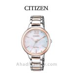 “سیتيزن “”Citizen Watch”” يكي از برندهاي معتبر و با سابقه در توليد ساعت مچي مردانه و ساعت مچي زنانه است كه توانسته با ساخت محصولات با كيفيت احساس اعتمادي را ذهن مشتريان خود ايجاد كند. این ساعت زیبا با قطر 32 میلی متر عرضه شده که سایز ایده آلی برای یک ساعت زنانه به شمار میرود. بند ساعت از جنس استیل و رنگ آن رزگلد و نقره ای می باشد. مزیت دیگر این مدل eco – drive میباشد که انرژی خود را توسط نور تامین میکند و دیگر نیازی به باتری نیست. طراحيهاي شركت سيتيزن بسيار شيك و چشم نواز است كه در اين مدل نيز كاملا مشهود است.اگر ساعت زیبا و ساده ولی در عین حال شیک میخواهید این ساعت گزینه مناسبی می باشد .