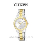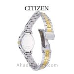 سیتيزن “Citizen Watch” يكي از برندهاي معتبر و با سابقه در توليد ساعت مچي مردانه و ساعت مچي زنانه است كه توانسته با ساخت محصولات با كيفيت احساس اعتمادي را ذهن مشتريان خود ايجاد كند. این ساعت زیبا با قطر 25 میلی متر و ضخامت 8 میلی متر عرضه شده که سایز ایده آلی برای یک ساعت زنانه به شمار میرود. بند ساعت از جنس استیل و رنگ آن طلایی و نقره ای می باشد. طراحيهاي شركت سيتيزن بسيار شيك و چشم نواز است كه در اين مدل نيز كاملا مشهود است.اگر ساعت زیبا و ساده ولی در عین حال شیک میخواهید این ساعت گزینه مناسبی می باشد .