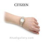 سیتيزن “Citizen Watch” يكي از برندهاي معتبر و با سابقه در توليد ساعت مچي مردانه و ساعت مچي زنانه است كه توانسته با ساخت محصولات با كيفيت احساس اعتمادي را ذهن مشتريان خود ايجاد كند. این ساعت زیبا با قطر 26 میلی متر و ضخامت 8 میلی متر عرضه شده که سایز ایده آلی برای یک ساعت زنانه به شمار میرود. بند ساعت از جنس استیل و رنگ آن طلایی و نقره ای می باشد. طراحيهاي شركت سيتيزن بسيار شيك و چشم نواز است كه در اين مدل نيز كاملا مشهود است.اگر ساعت زیبا و ساده ولی در عین حال شیک میخواهید این ساعت گزینه مناسبی می باشد .