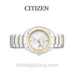 سيتيزن “Citizen Watch” يكي از برندهاي معتبر و با سابقه در توليد ساعت مچي مردانه و ساعت مچي زنانه است كه توانسته با ساخت محصولات با كيفيت احساس اعتمادي را ذهن مشتريان خود ايجاد كند. این ساعت زیبا با قطر 31 میلی متر و ضخامت 9 میلی متر عرضه شده که سایز ایده آلی برای یک ساعت زنانه به شمار میرود. بند ساعت از جنس استیل و رنگ آن طلایی و نقره ای می باشد. طراحيهاي شركت سيتيزن بسيار شيك و چشم نواز است كه در اين مدل نيز كاملا مشهود است. مزیت دیگر این مدل eco-drive می باشد که انرژی خود را توسط نور تامین میکند. جنس شيشه ضد خش بوده و از كيفيت ساخت بالايي برخوردار است . اگر ساعت زیبا و ساده ولی در عین حال شیک میخواهید این ساعت گزینه مناسبی می باشد .