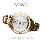 “سیتيزن “”Citizen Watch”” يكي از برندهاي معتبر و با سابقه در توليد ساعت مچي مردانه و ساعت مچي زنانه است كه توانسته با ساخت محصولات با كيفيت احساس اعتمادي را ذهن مشتريان خود ايجاد كند. این ساعت زیبا با قطر 32.5 میلی متر عرضه شده که سایز ایده آلی برای یک ساعت زنانه به شمار میرود. بند ساعت از جنس استیل و رنگ آن رزگلد می باشد. مزیت دیگر این مدل eco – drive میباشد که انرژی خود را توسط نور تامین میکند و دیگر نیازی به باتری نیست. طراحيهاي شركت سيتيزن بسيار شيك و چشم نواز است كه در اين مدل نيز كاملا مشهود است.اگر ساعت زیبا و ساده ولی در عین حال شیک میخواهید این ساعت گزینه مناسبی می باشد .