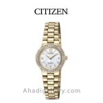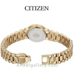 سیتيزن “Citizen Watch” يكي از برندهاي معتبر و با سابقه در توليد ساعت مچي مردانه و ساعت مچي زنانه است كه توانسته با ساخت محصولات با كيفيت احساس اعتمادي را ذهن مشتريان خود ايجاد كند. این ساعت زیبا با قطر 21 میلی متر عرضه شده که سایز ایده آلی برای یک ساعت زنانه به شمار میرود. بند ساعت از جنس استیل و رنگ آن طلایی می باشد. مزیت دیگر این مدل eco – drive میباشد که انرژی خود را توسط نور تامین میکند و دیگر نیازی به باتری نیست. طراحيهاي شركت سيتيزن بسيار شيك و چشم نواز است كه در اين مدل نيز كاملا مشهود است.اگر ساعت زیبا و ساده ولی در عین حال شیک میخواهید این ساعت گزینه مناسبی می باشد .