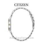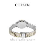 سیتيزن “Citizen Watch” يكي از برندهاي معتبر و با سابقه در توليد ساعت مچي مردانه و ساعت مچي زنانه است كه توانسته با ساخت محصولات با كيفيت احساس اعتمادي را ذهن مشتريان خود ايجاد كند. این ساعت زیبا با قطر 30 میلی متر عرضه شده که سایز ایده آلی برای یک ساعت به زنانه شمار میرود. بند ساعت از جنس استیل و رنگ آن طلایی و نقره ای می باشد. مزیت دیگر این مدل eco – drive میباشد که انرژی خود را توسط نور تامین میکند و دیگر نیازی به باتری نیست. طراحيهاي شركت سيتيزن بسيار شيك و چشم نواز است كه در اين مدل نيز كاملا مشهود است.اگر ساعت زیبا و ساده ولی در عین حال شیک میخواهید این ساعت گزینه مناسبی می باشد .