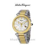 ساعت مردانه Salvatore Ferragamo FCP040017 ساعتی روزمره و کلاسیک هست که با بند استیل طلایی و نقره ای و صفحه ای به رنگ سفید به شما مشتریان خوب عرضه میگردد . شیشه این ساعت سافایر کریستال می باشد که زیبایی آن را دو چندان می کند . صفحه کرنوگراف از دیگر مزیت های این ساعت زیبا و دوست داشتنی می باشد . این ساعت از سری Idillio می باشد. مقاومت این ساعت در آب 30 متر هست . در مجموع اگر قصد خرید ساعتی بسیار زیبا را دارید این ساعت یکی از بهترین نمونه ها در این بازه قیمتی محسوب می شود .