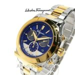 ساعت مردانه Salvatore Ferragamo FFM110016 ساعتی روزمره و کلاسیک هست که با بند استیل طلایی و نقره ای و صفحه ای به رنگ سورمه ای به شما مشتریان خوب عرضه میگردد . شیشه این ساعت سافایر کریستال می باشد که زیبایی آن را دو چندان می کند . مقاومت این ساعت در آب 30 متر هست . صفحه کرنوگراف از مزیت دیگر این مدل ساعت حساب می گردد. در مجموع اگر قصد خرید ساعتی بسیار زیبا را دارید این ساعت یکی از بهترین نمونه ها در این بازه قیمتی محسوب می شود .