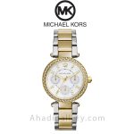 ساعت زنانه Micheal Kors MK6055 ساعتی هست که با بند استیل طلایی و نقره ای به شما مشتریان خوب عرضه میگردد . قطر این ساعت زیبا 33 میلی متر است. شیشه این ساعت کریستال ضد خش می باشد که زیبایی آن را دو چندان می کند . این مدل از سری Mini Parker می باشد. در مجموع اگر قصد خرید ساعتی ساده ولی در عین حال زیبا و شیک را دارید این ساعت یکی از بهترین نمونه ها در این بازه قیمتی محسوب می شود .