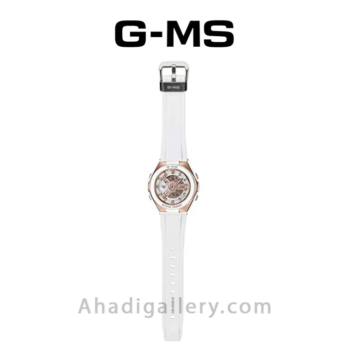 از خط تولید BABY-G مدل G-MS که مخصوص زنان فعال و پیشرفته امروز است مجموعهای از مدلهای باشکوه ارائه شده است. استفاده سخاوتمندانه از رنگ طلایی و طلایی صورتی در بخشهای فلزی مجموعهای از مدلهایی ایجاد کرده که جذابیت و شکوه را برای مچ دستهای زنانه به ارمغان میآورند. در حلقه اطراف صفحه، حلقه بند و سگک نیز فلز به کار رفته است، و این ظاهر جذاب فلزی برای بانوان عالی است.