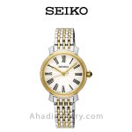 ساعت زنانه SRZ496P1 ساعتی روزمره با بند استیل طلایی و نقره ای به مشتریان شما ارائه می شود.قطر این مدل 28 میلی متر است. مقاومت آن در آب 50 متر است. جنس شیشه این مدل هاردلکس است که زیبایی آن را دو برابر کرده است.اگر قصد خرید ساعتی روزمره دارید، این ساعت یکی از بهترین نمونه ها است.