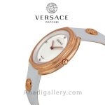 ساعت زنانه VERSACE VA7030013 ساعتی فشن هست که با بند چرم سفید و صفحه ای به رنگ صدفی به شما مشتریان خوب عرضه میگردد . قطر این ساعت زیبا 39 میلی متر و ضخامت 9 میلی متر است . شیشه این ساعت سافایر کریستال می باشد که زیبایی آن را دو چندان می کند . مقاومت این ساعت در آب تا عمق 30 متر می باشد. در مجموع اگر قصد خرید ساعتی فشن را دارید این ساعت یکی از بهترین نمونه ها در این بازه قیمتی محسوب می شود .