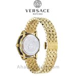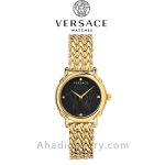 ساعتی با قاب فولادی ضد زنگ با یون اندود طلای زرد با بندی از جنس استنلس استیل با یون اندود طلای زرد، قاب با روکش طلای زرد ثابت. صفحه مشکی با عقربه های طلایی زرد. نشانگرهای رنگ طلایی در موقعیت های ساعت 3، 6 و 9.
