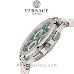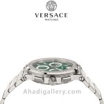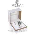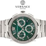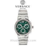 این ساعت سوئیسی یک اکسسوری شگفتانگیز و زیبا برای آقایان است، دارای یک صفحه 43 میلیمتری خیرهکننده با سه کرنوگراف و عقربههای باریک است. با الهام از اساطیر یونان با طراحی شیک و نوآورانه با لوگوی ورساچه که به طور متناوب روی حلقه اطراف تکرار می شود.